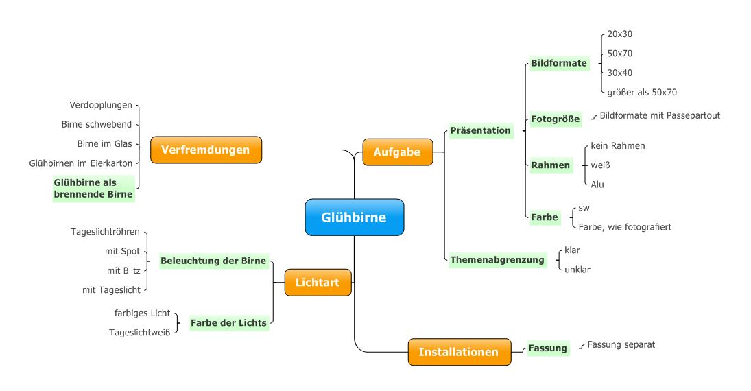 Insbesondere für Aufgaben, die eine Brainstormingsitzung erfordern oder für eine Projektplanung ist das Arbeiten mit Mindmaps sinnvoll.