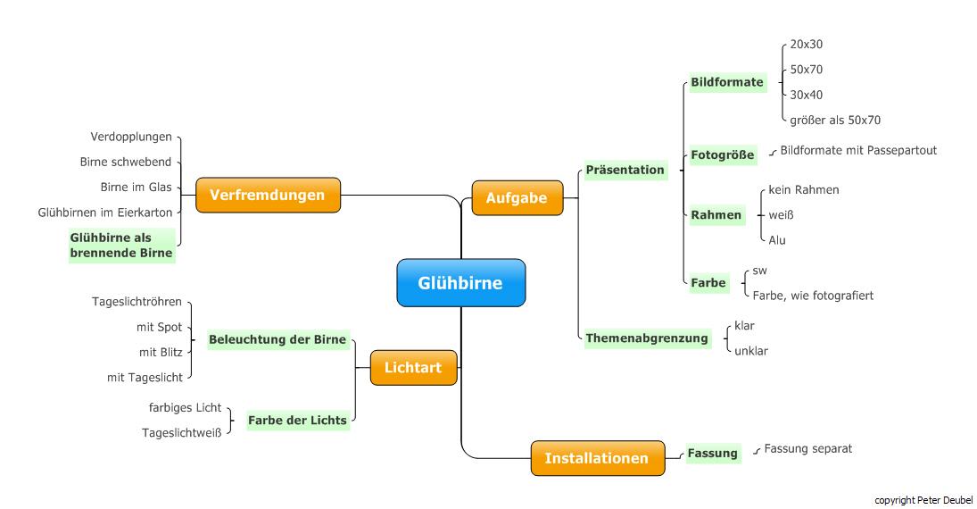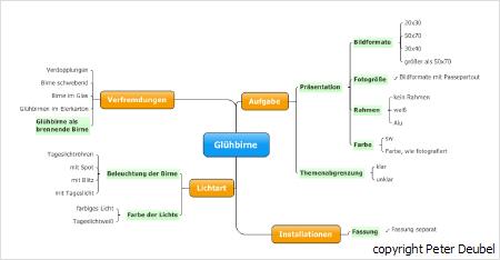 Diese Kreativitätsmethode versucht zu dokumentieren, was sich im Kopf abspielt, wenn man über einen Begriff nachdenkt. Der Begriff, über den gerade nachgedacht wird, erzeugt in Bruchteilen von Sekunden weiterer Assoziationen, die sich immer weiter verästeln. Über eine Grafik ist es nun möglich, diese Verästelungen darzustellen.