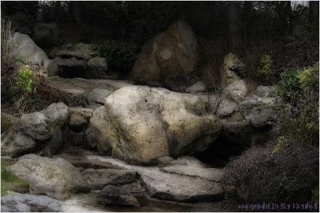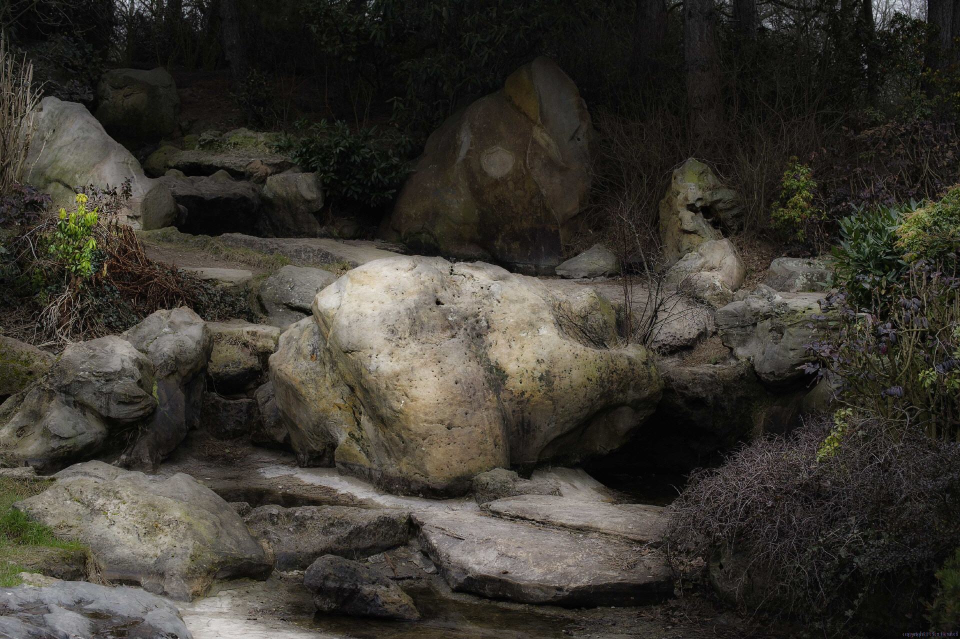 Diese Steine wurden in einem Teil des japanischen Gartens in Düsseldorf aufgenommen. Normalerweise fließt hier Wasser.